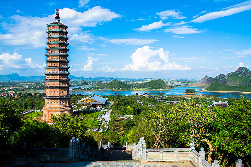 The last stop in the spring trip to Ninh Binh is Bai Dinh Pagoda, a pagoda with its own design, large campus, beautiful stupa, visitors can rent an electric car here for convenient sightseeing.